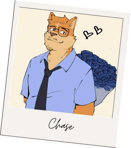 Chase is a Chinese-Filipino orange tabby cat with a lean, athletic build. He is utterly joyful and sociable, often spending his time between his career as a graphic designer/photographer and his hobbies as an athlete, hiker, and chef. He balances his intensity with Tyler through playful teasing and spoiling. His favorite treats are a satisfying bowl of carbonara and a sweet blueberry muffin paired with red iced tea.Chase is the life of the party, defined by his joyful and outgoing nature. He is an energetic extrovert who loves hanging out with people, radiating warmth and positivity. His relationship with Tyler is characterized by playful affection: he loves teasing his boyfriend, but his actions are rooted in deep care, as he also loves spoiling him. Chase likely balances Tyler's intensity, bringing lightness and humor into their dynamic.